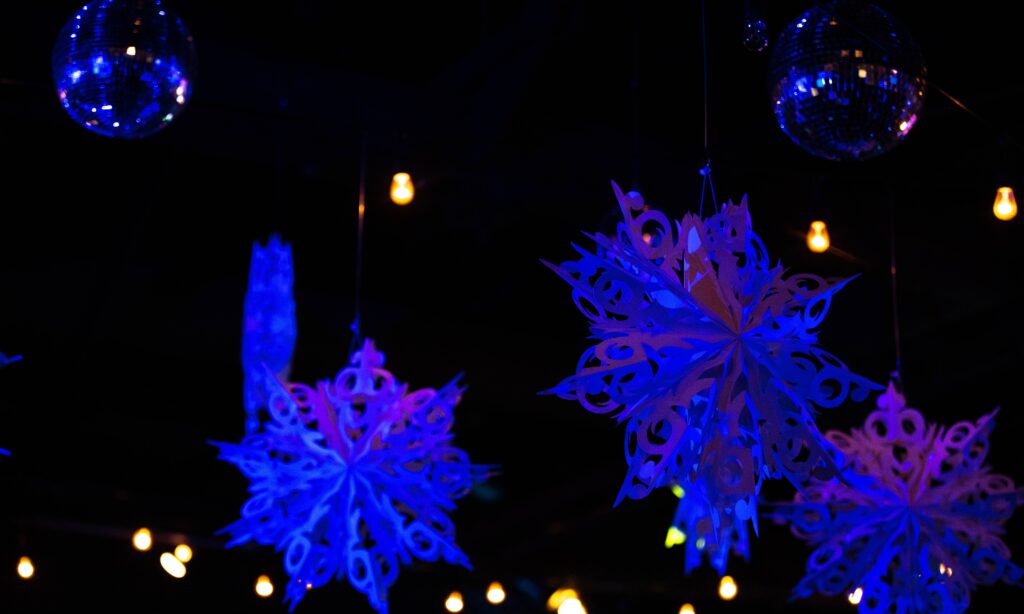 - Snowflake Ceiling Treatment & Photo Booth Backdrop